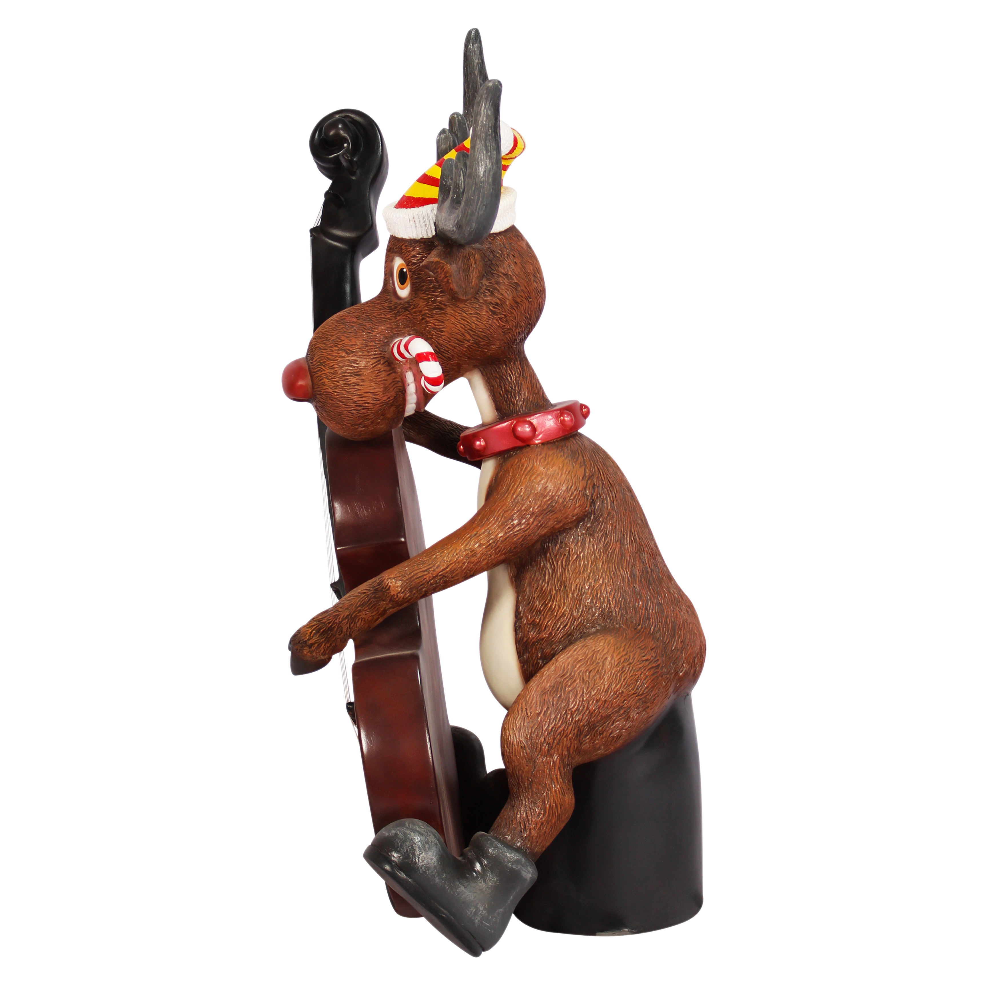 Crea una memorable exhibición de navidad con esta alegre estatua de Blues el Reno. Con un divertido tono, este producto muestra un Reno tocando el violÃn. Hecha en resina de fibra de vidrio de larga duración puede estar expuesto a cualquier clima lo que lo hace ideal para espacios interiores y exteriores. Perfecta combinación con nuestros otros personajes de navidad.